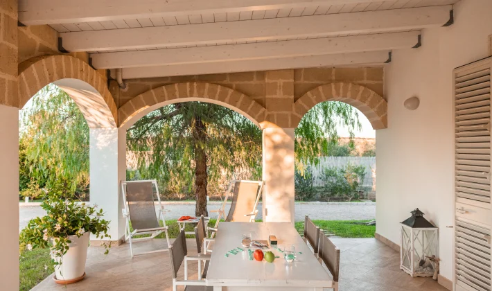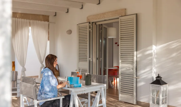 Ogni soluzione dell'Agriturismo - camera e appartamenti dispone di una veranda privata arredata con cura, trasformandosi al tramonto in un angolo di pura suggestione: il luogo ideale per degustare un calice di vino, immergersi nella lettura o semplicemente godere della quiete sotto l’ombra di un ulivo secolare.