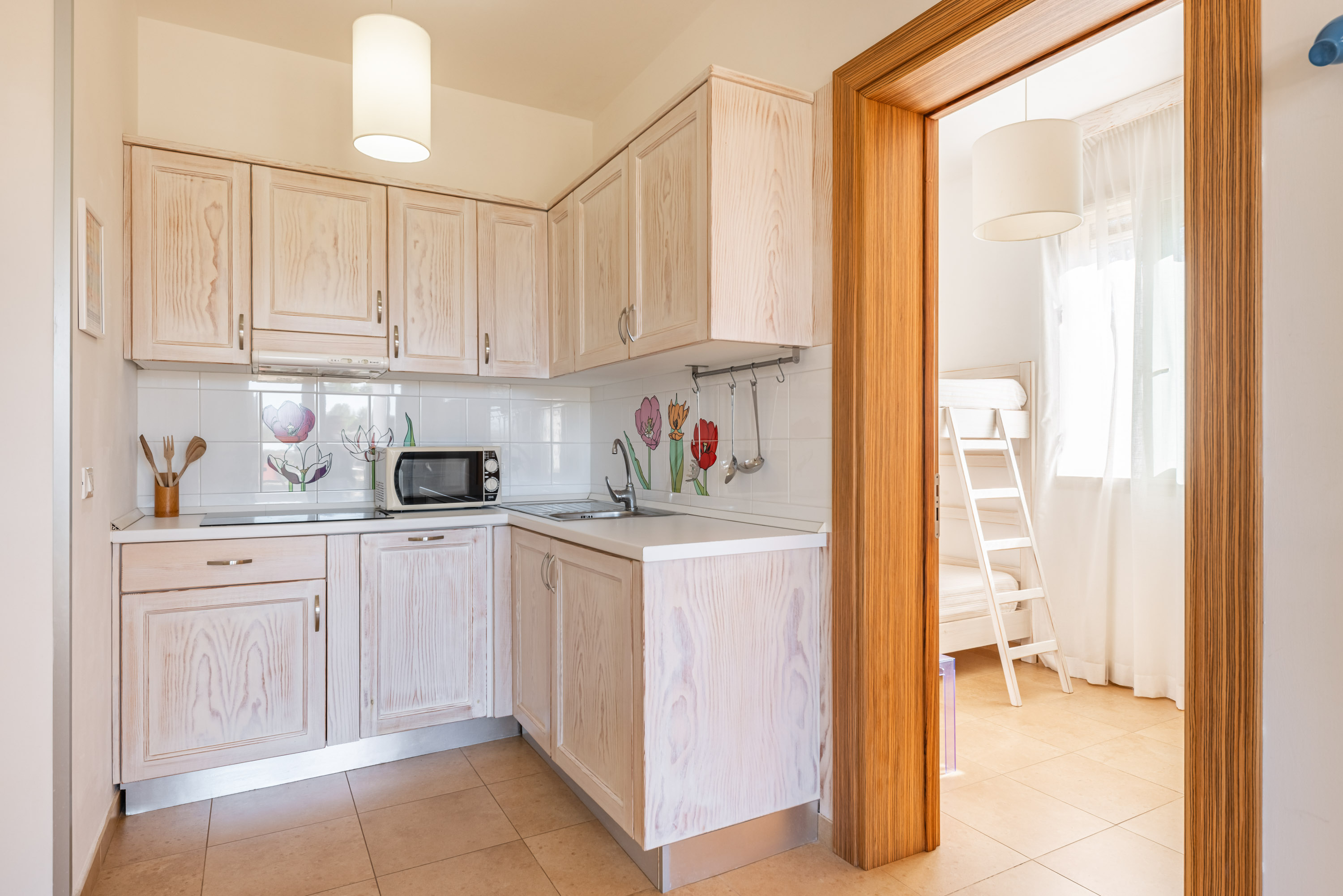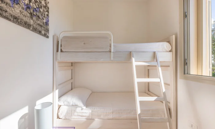Situata al piano terra dell'Agriturismo con ingresso indipendente si compone di camera matrimoniale, cucina abitabile, cameretta con letto a castello (per bambini e/o ragazzi non superiori ai 170 cm di altezza) e bagno completo di box doccia. Questa tipologia è pensata per chi desidera la riservatezza di due camere. Inoltre il patio esterno privato con vista piscina/giardino vi permetterà di trascorrere in totale relax la vostra vacanza.